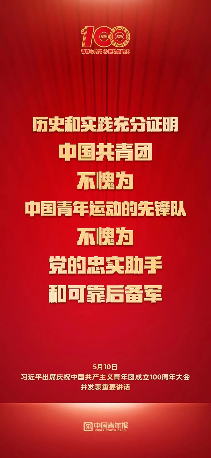 歷史和實(shí)踐充分證明,中國(guó)共青團(tuán)不愧為中國(guó)青年運(yùn)動(dòng)的先鋒隊(duì),不愧為黨的忠實(shí)助手和可靠后備軍!