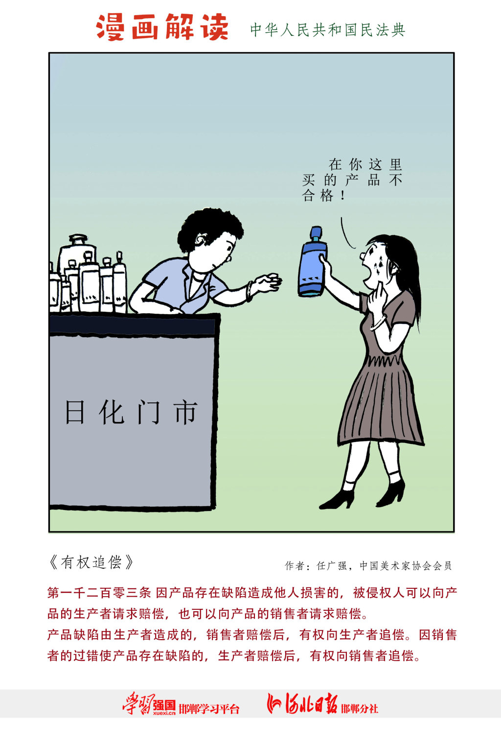 民法典是新中國成立以來第一部以“法典”命名的法律,是新時代我國社會主義法治建設(shè)的重大成果。為加強民法典普法宣傳,推動民法典走到群眾身邊、走進群眾心里,“學(xué)習(xí)強國”邯鄲學(xué)習(xí)平臺、河北日報報業(yè)集團邯鄲分社聯(lián)合推出民法典漫畫解讀。(漫畫由河北省邱縣縣委宣傳部、邱縣司法局提供)