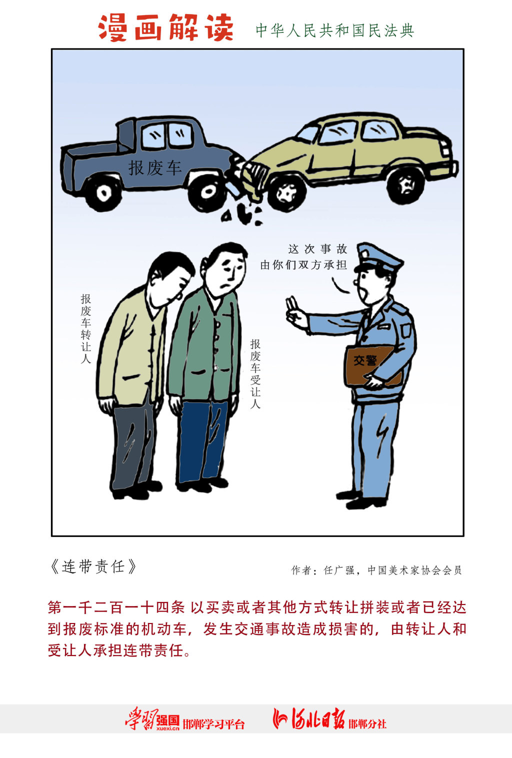 民法典是新中國成立以來第一部以“法典”命名的法律,是新時(shí)代我國社會主義法治建設(shè)的重大成果。為加強(qiáng)民法典普法宣傳,推動民法典走到群眾身邊、走進(jìn)群眾心里,“學(xué)習(xí)強(qiáng)國”邯鄲學(xué)習(xí)平臺、河北日報(bào)報(bào)業(yè)集團(tuán)邯鄲分社聯(lián)合推出民法典漫畫解讀。(漫畫由河北省邱縣縣委宣傳部、邱縣司法局提供)
