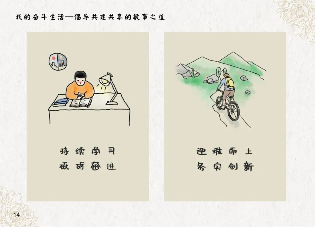為便于理解傳播,同步推出原創(chuàng)漫畫繪本(第一冊),繪本緊緊圍繞首批30條標準創(chuàng)作設計,通過柔軟的筆觸,流暢的線條,以簡約明快、生動有趣的創(chuàng)作手法對美德健康生活方式進行了充分的解讀與建構,藝術表達緊貼生活經驗,表現(xiàn)內容富有濃郁地方特色,極具文人意趣與傳統(tǒng)文化韻味。