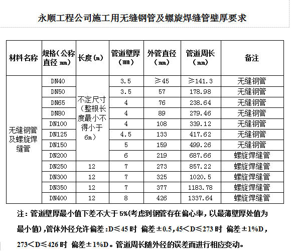 ①無縫鋼管:采取20#鋼,標準為GB/T17395-2008《無縫鋼管尺寸、外形、重量及運行偏差》、GB/8163《輸送流體用無縫鋼管》;螺旋鋼管:材質(zhì)為Q235B,標準為GB/T 9711-2017。無縫鋼管及螺旋鋼管壁厚最小值下差不大于5%,(考慮到鋼管存在偏心率,以最薄壁厚處值為最小值)且不得低于以下企業(yè)標準:上海寶鋼集團公司、首鋼集團、鞍山鋼鐵集團公司、武漢鋼鐵(集團)公司、萊蕪鋼鐵集團、濟南鋼鐵集團總公司、攀枝花鋼鐵(集團)公司、唐山鋼鐵集團有限責任公司、青島鋼鐵控股集團有限責任公司、天津鋼管集團有限公司。