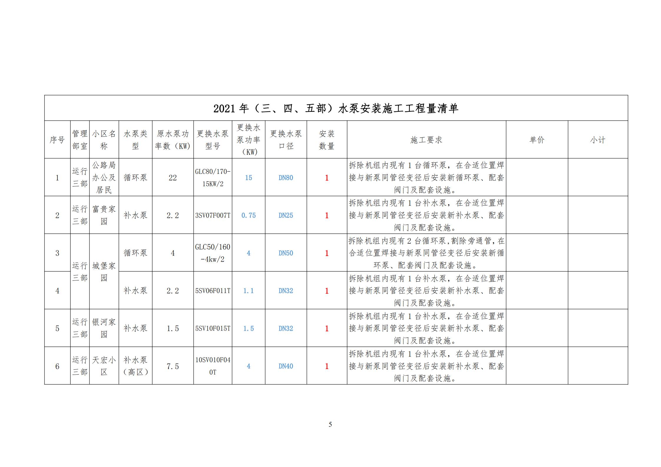 工程范圍:合同內(nèi)所有三四五部包括但不限于工程量清單及范圍內(nèi)所有水泵更換安裝等,詳細(xì)內(nèi)容見工程量清單。
